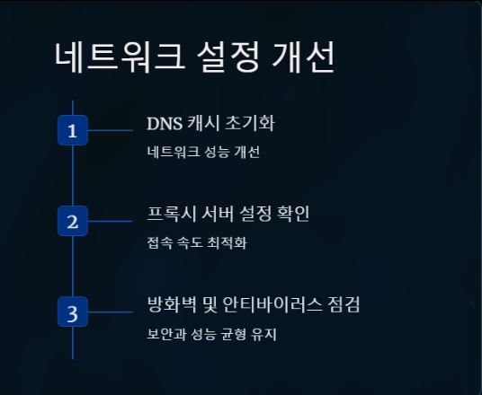 프록시 서버 설정을 확인하고 최적화하는 것도 중요합니다. 프록시 서버는 인터넷 접속 속도를 높이고 보안을 강화하는 데 도움이 될 수 있지만, 잘못 설정된 경우 오히려 속도를 저하시킬 수 있습니다.